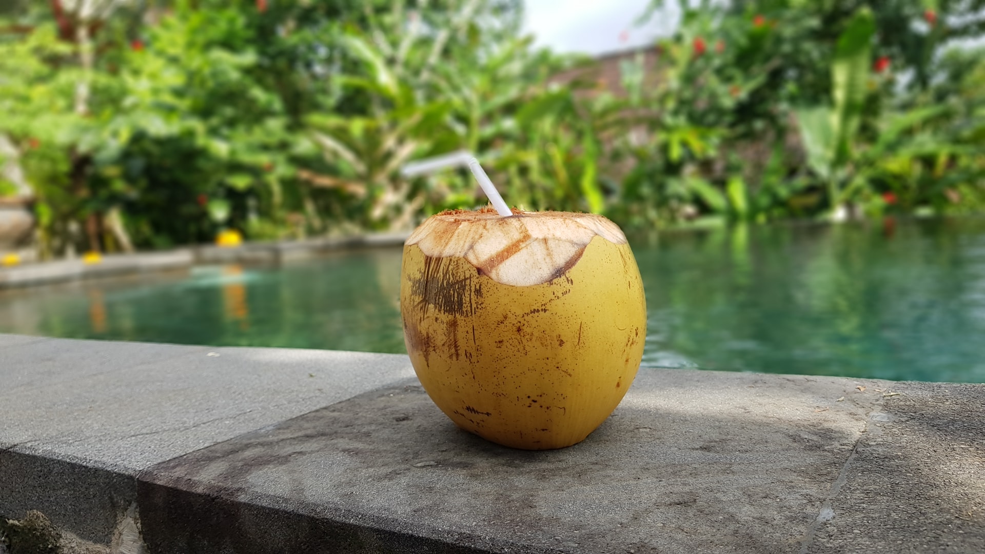 Aby dostać się do wody kokosowej należy zrobić otwór najlepiej za pomocą przeznaczonego do tego narzędzia, włożyć słomkę i delektować się dziewiczym, smacznym napojem z wnętrza kokosa.